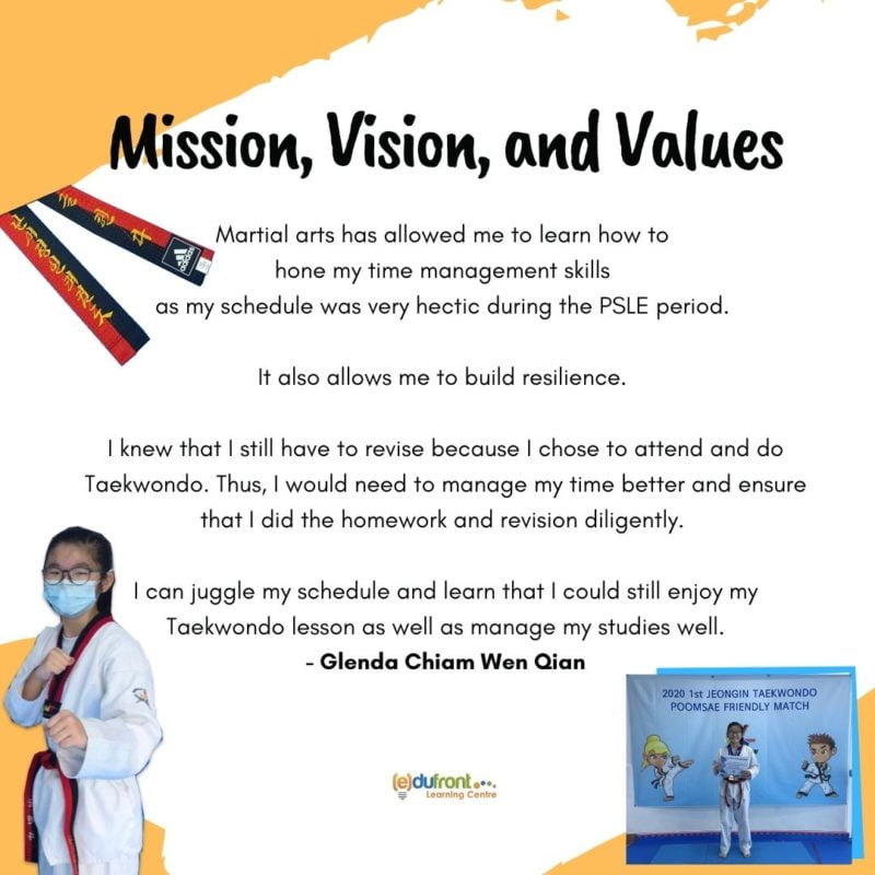 She took PSLE during the Covid-19 period, which meant the bulk of her lessons were done online via Home-Based Learning(HBL). It was something new and stressful for her as she could not clarify her doubts with the teachers immediately. In the same year, she had to take her grading test for Taekwondo. On top of that, she has a lot of homework to complete which gave her less time for revision.