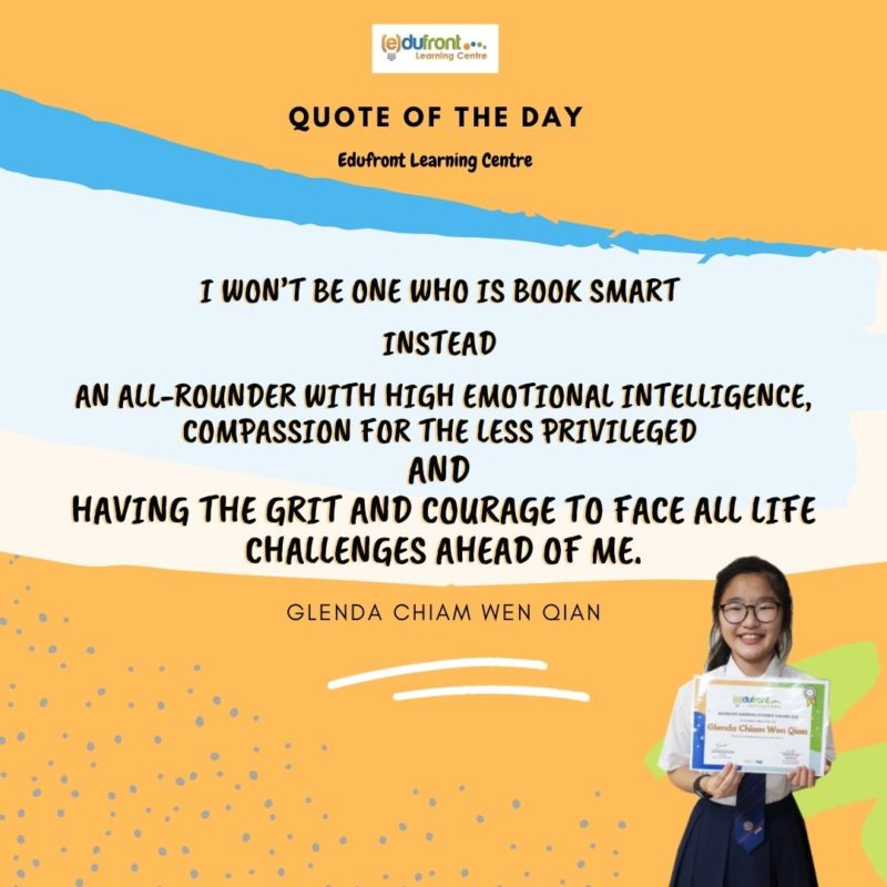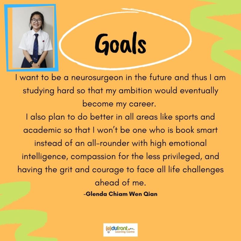Glenda persevered and did not give up in the face of adversity. She writes notes for each topic to help her understand better and tuition via Edufront’s webinar classes and Learning Management System (LMS) also helped her revise the concepts. She enjoyed attempting the LMS questions and did them diligently.