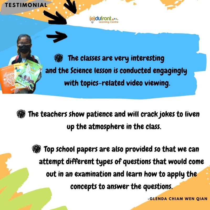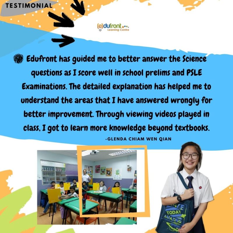 Her family members were unable to help her cope with Science as they were not well-versed in the subject. She had to try hard and push through by herself and with the help of Edufront tuition.
