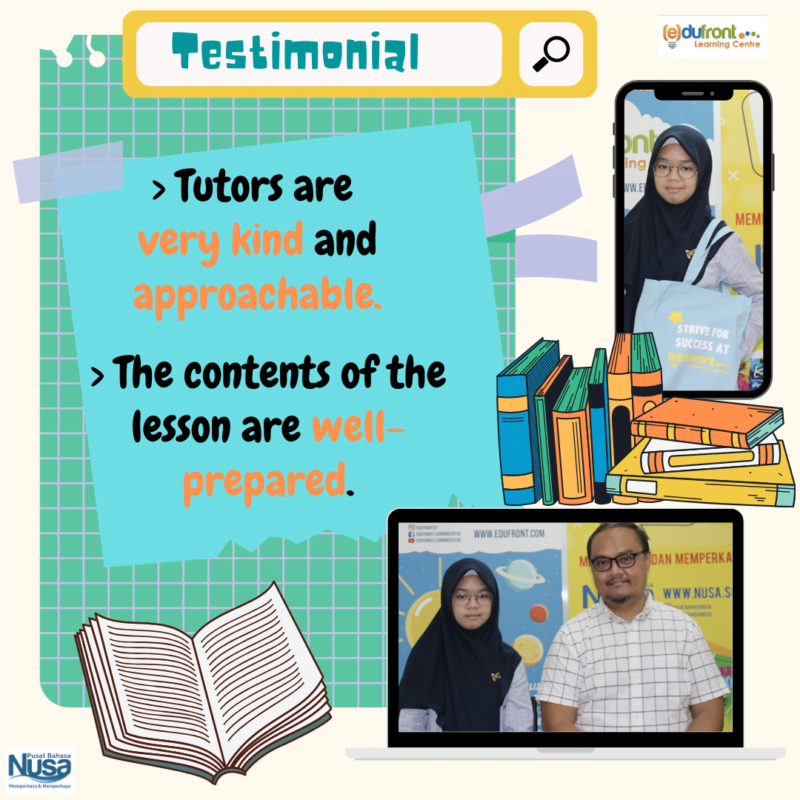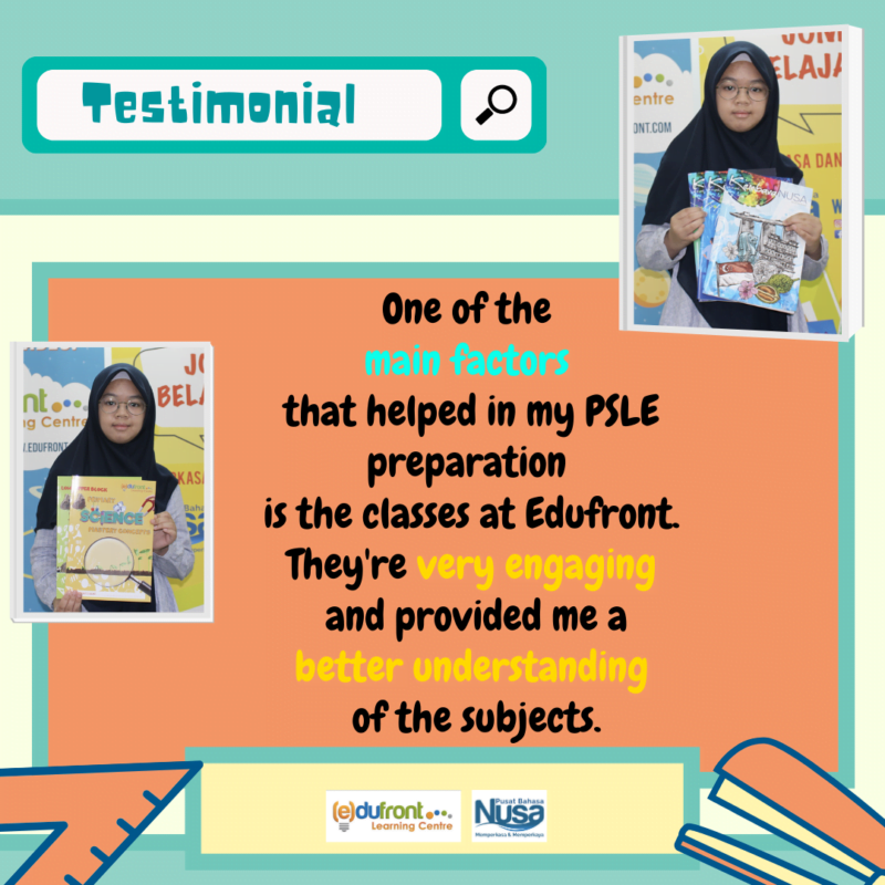 However, she managed to push herself through the PSLE preparation with the help from her family and Edufront/ NUSA Language Centre tuition.