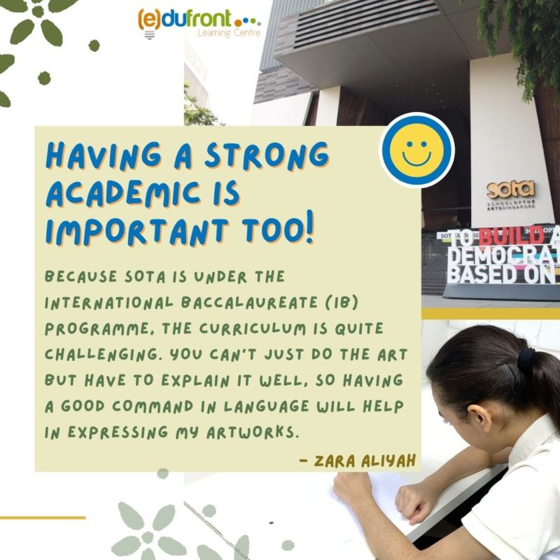 Zara emphasises that despite being in the Arts, academic excellence is as important as creative knowledge. Therefore, she is thankful that Edufront provided the right academic foundation that eventually allowed her to follow her dreams.