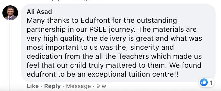 Yearly we have students making 2-3 grades improvements and entering top secondary schools like RI, RGS, ACS(I) and VS in the elite IP/IB programmes. However, every child is different and final results depends on many factors such as the ability level of the child and other factors like home and school support. Our programme is designed to give your child the best possible support so that they would achieve the very best in their exams, continue to love learning and achieve greatness throughout their education journey.